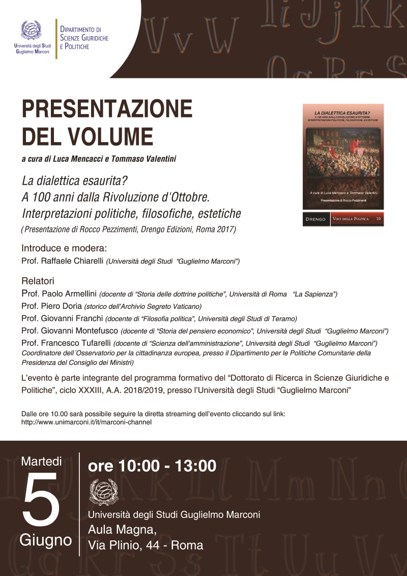 Presentazione del volume: “La dialettica esaurita? A 100 anni dalla rivoluzione d’Ottobre. Interpretazioni politiche, filosofiche, estetiche.”