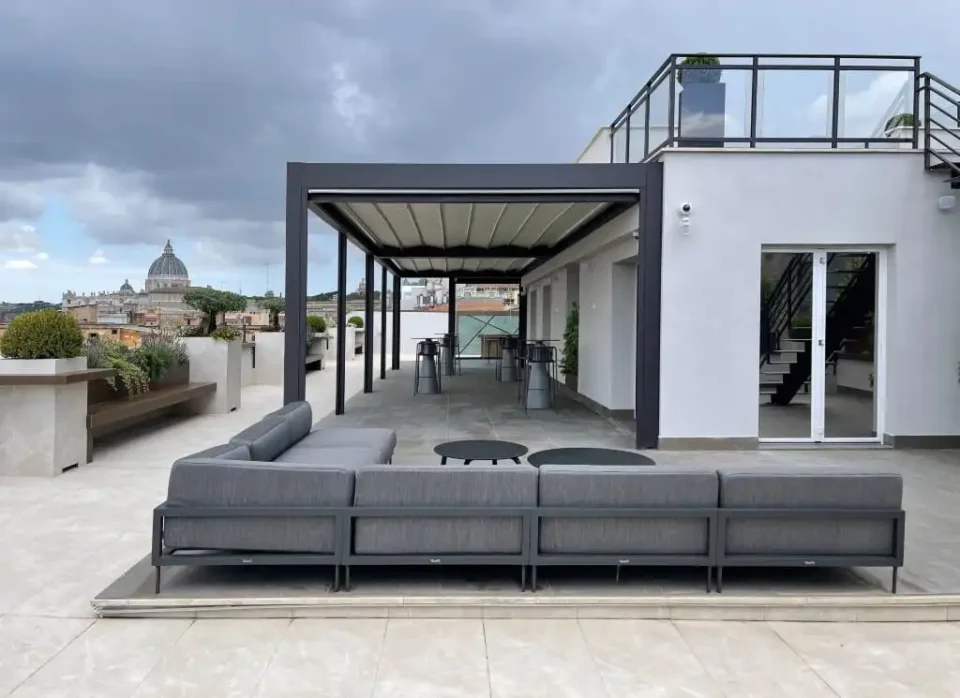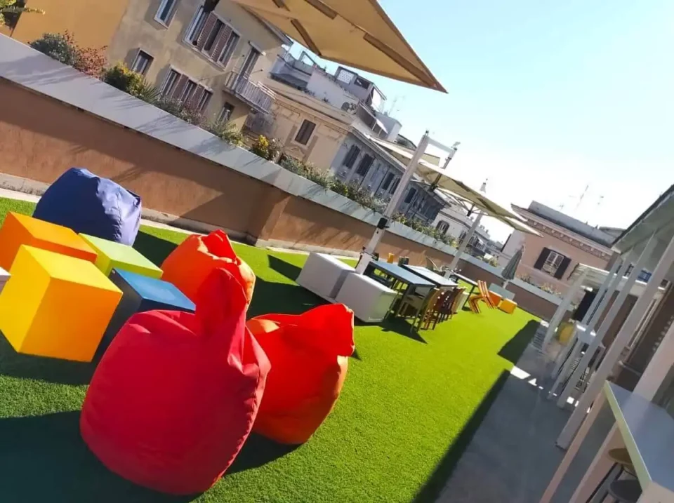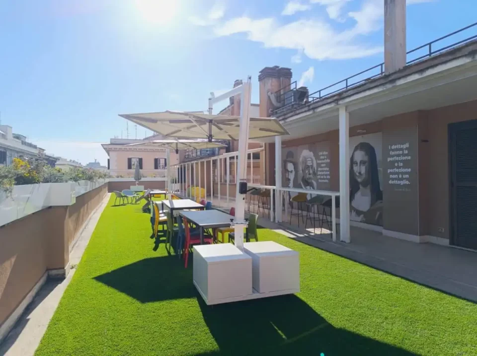 - Uno spazio didattico unico nel suo genere, che combina le funzionalità di un’aula moderna, presenziale e multimediale con la bellezza e l’unicità di una delle terrazze più suggestive di Roma.